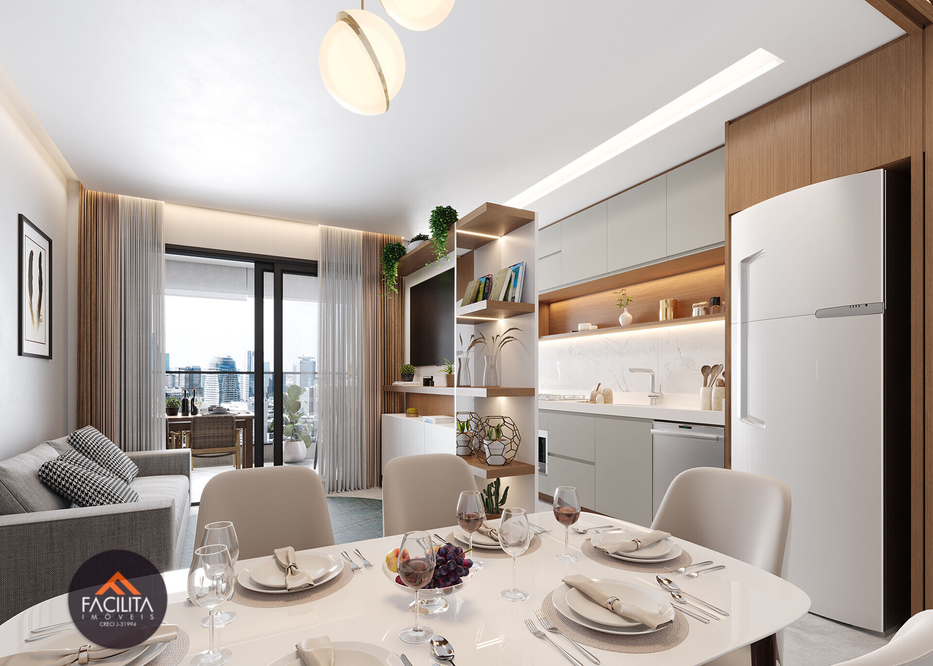 Sala, Cozinha, W.C. Social, 2 ou 3 Dorms, Sendo 1 Suíte, Varanda, Balcão Técnico no Pavimento, Depósito na Garagem e 2 ou 3 Vagas de Garagem;