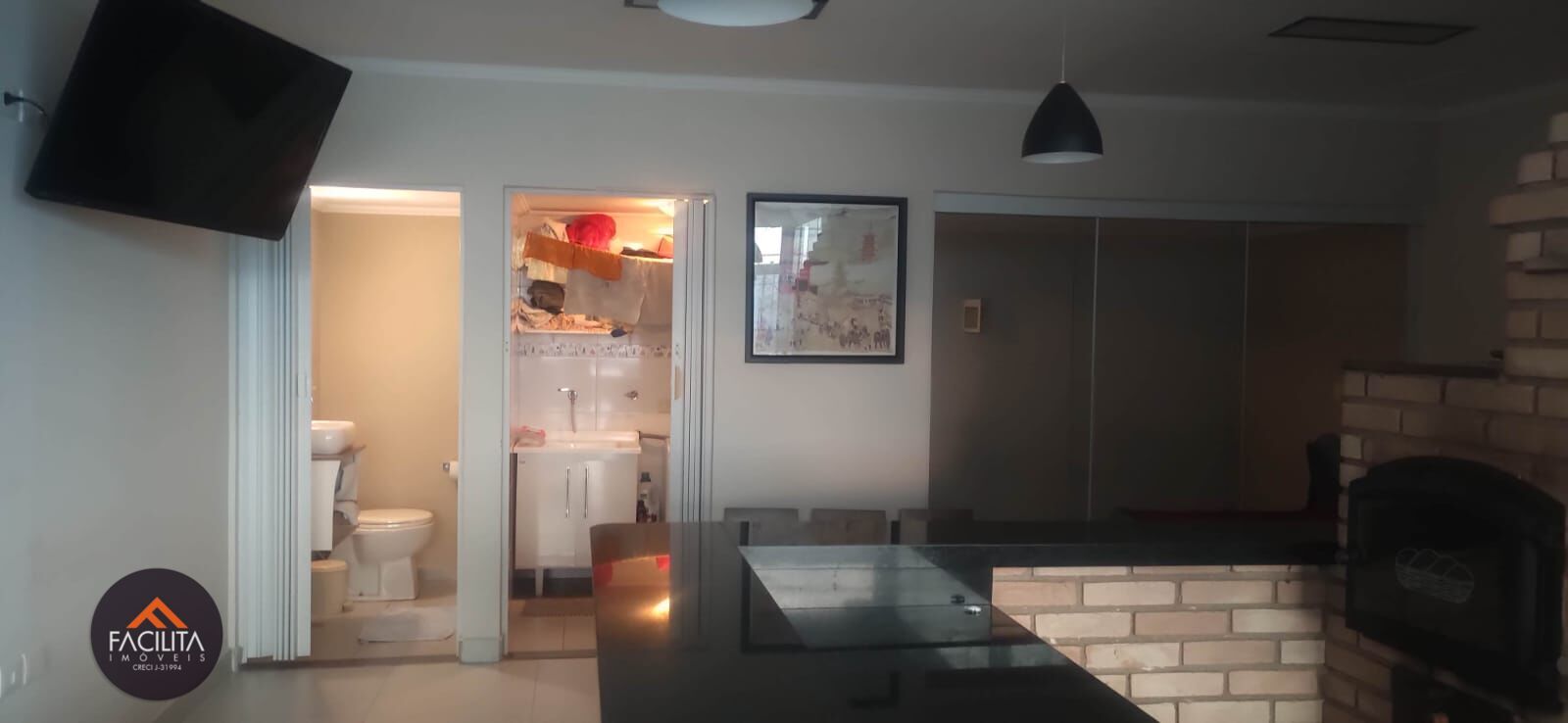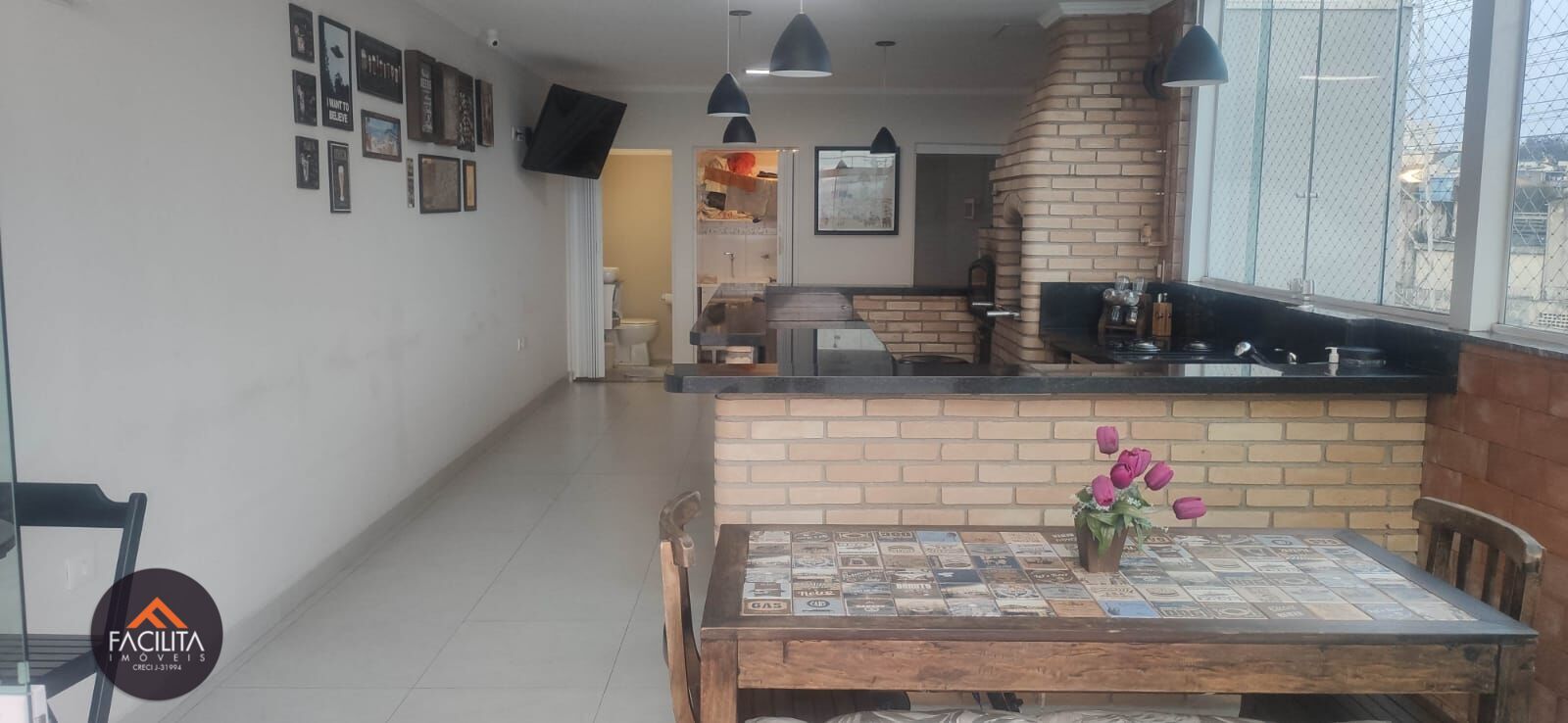 Piso superior, contém uma sala grande e Espaço Gourmet com churrasqueira e forno a lenha, banheiro e lavanderia fechada.