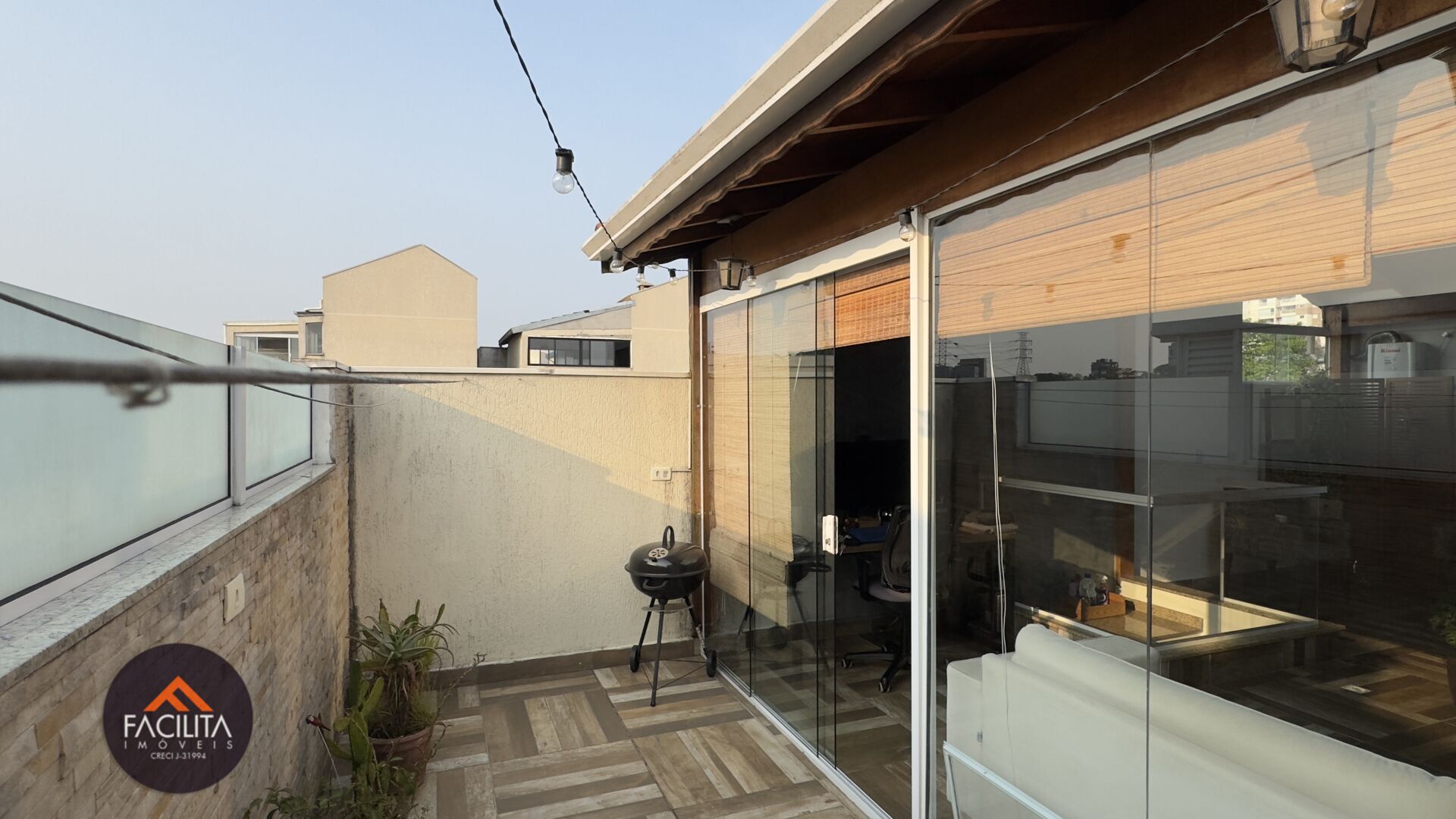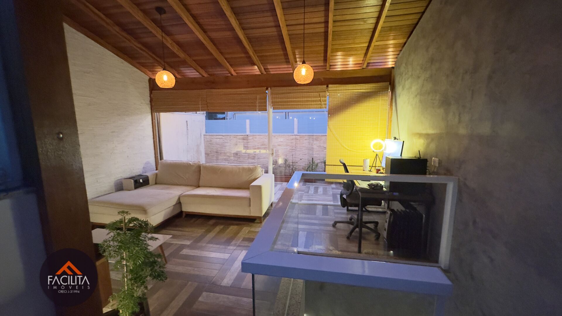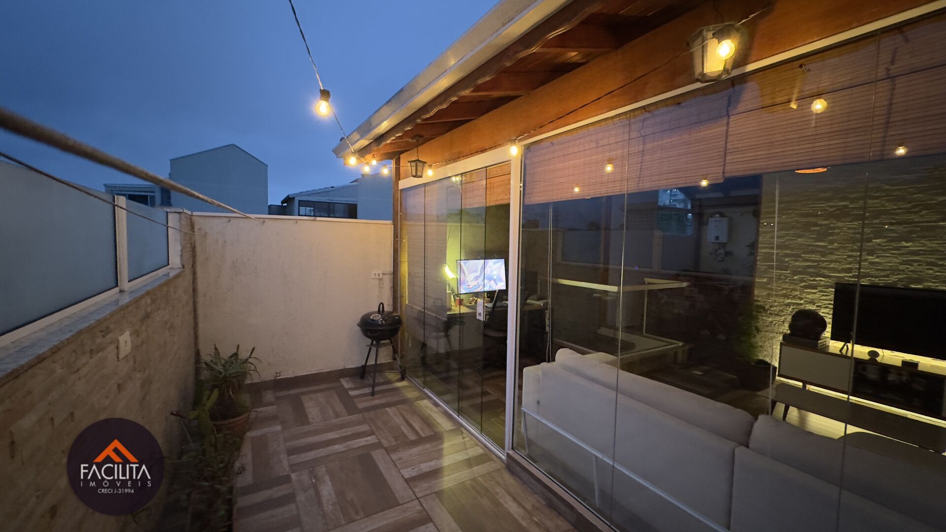 Cobertura ampla, moderna com ambientes integrados compostos de sala de estar, sala de TV, escritório e com muita luz natural, devido às grandes janelas do local. Varanda aberta com quintal.