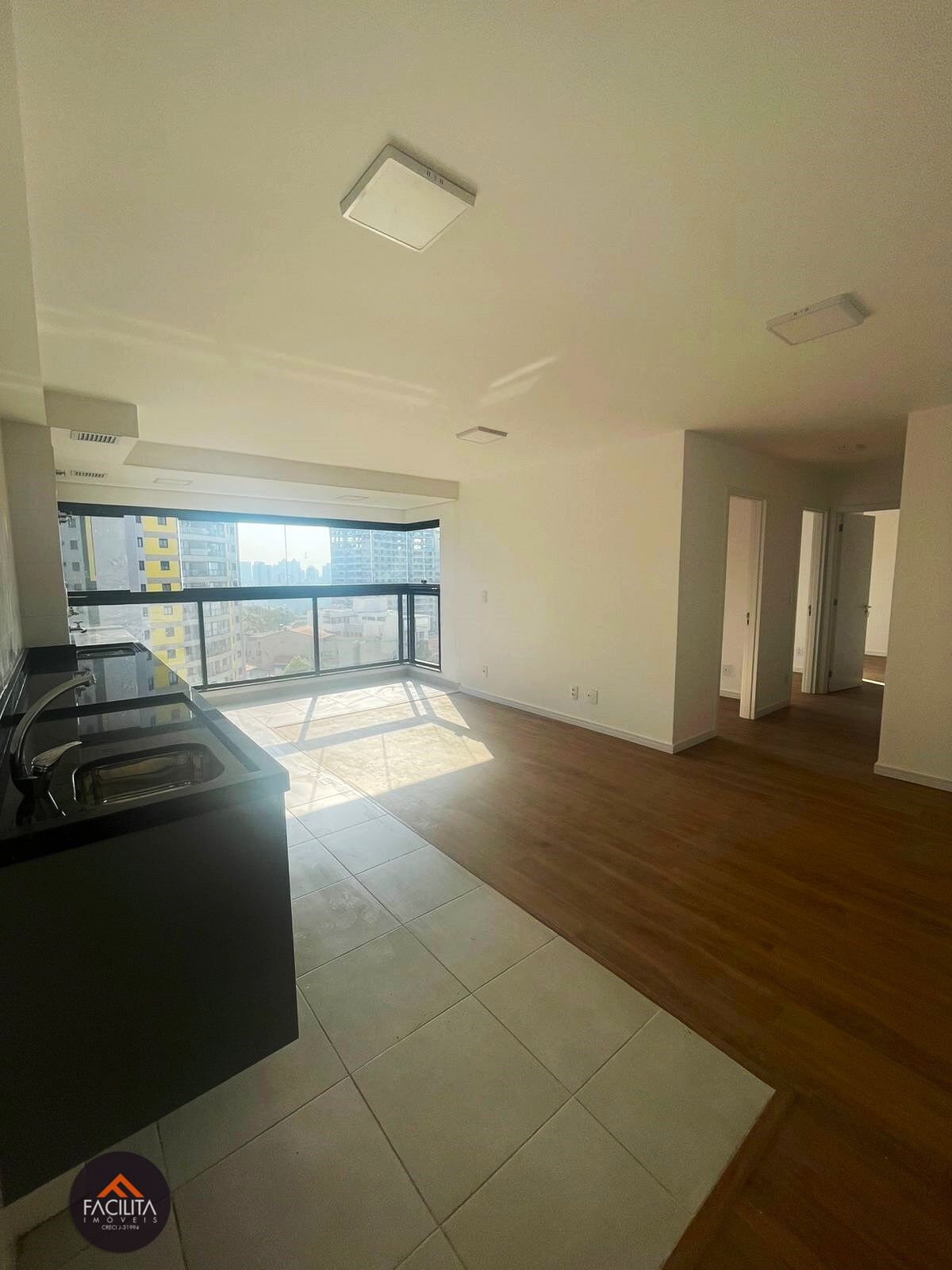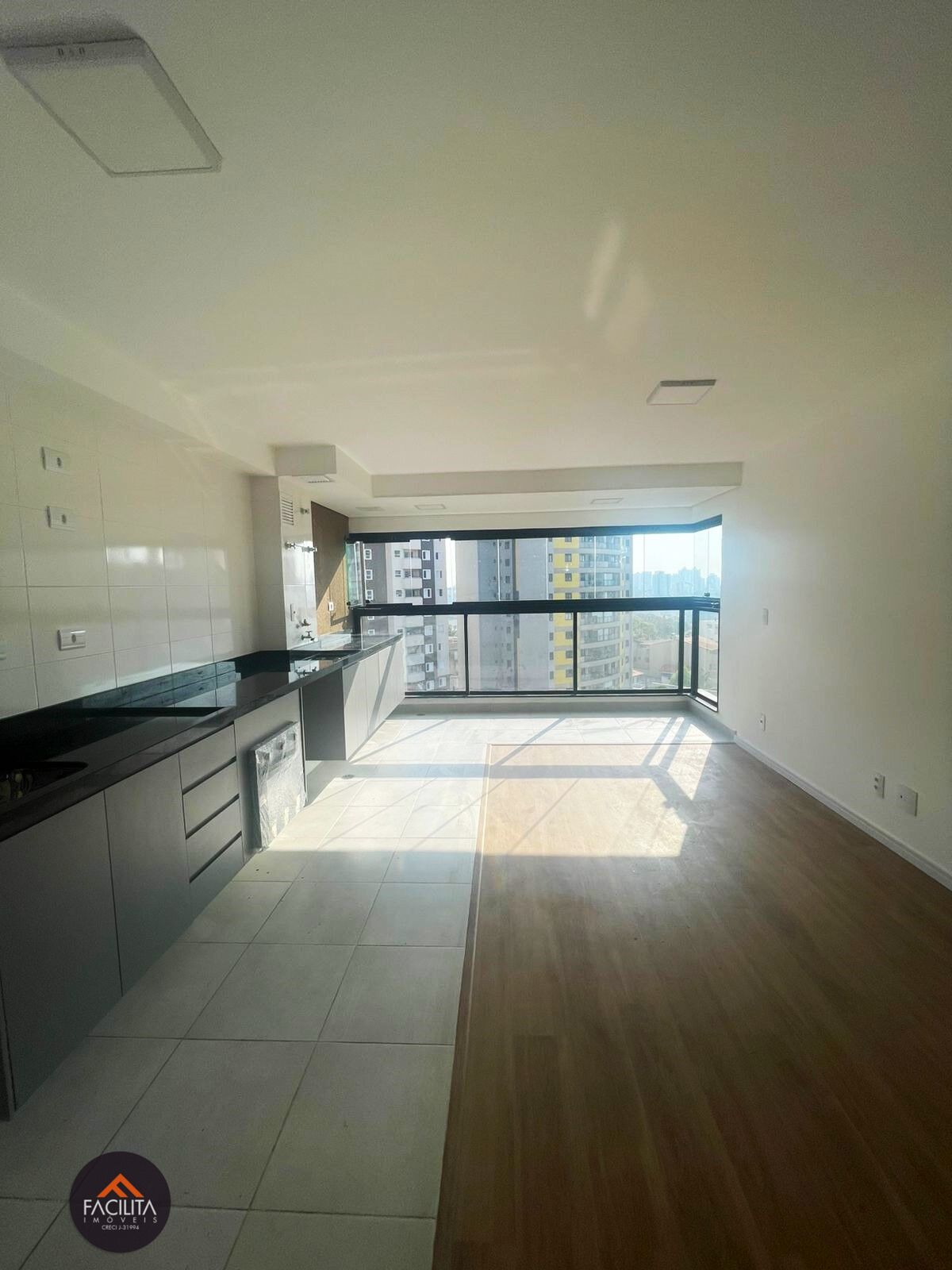 Box de vidroPiso laminadoVaranda envidraçada