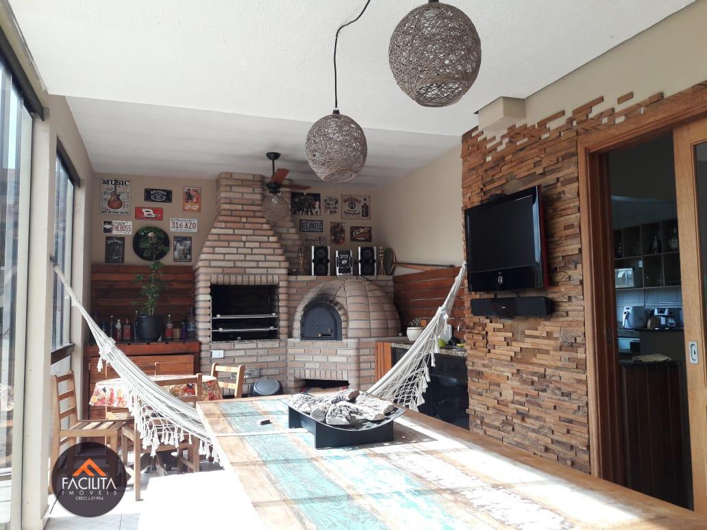 - 3 dormitórios, 1 suíte, 1 WC/escritório 1 lavabo, garagem para 3 carros, área de churrasqueira com WC.Condomínio fechado com piscina, sauna, quadra, salão de festas, churrasqueira, parquinho, bosque, lago para pesca e portaria 24 horas.
